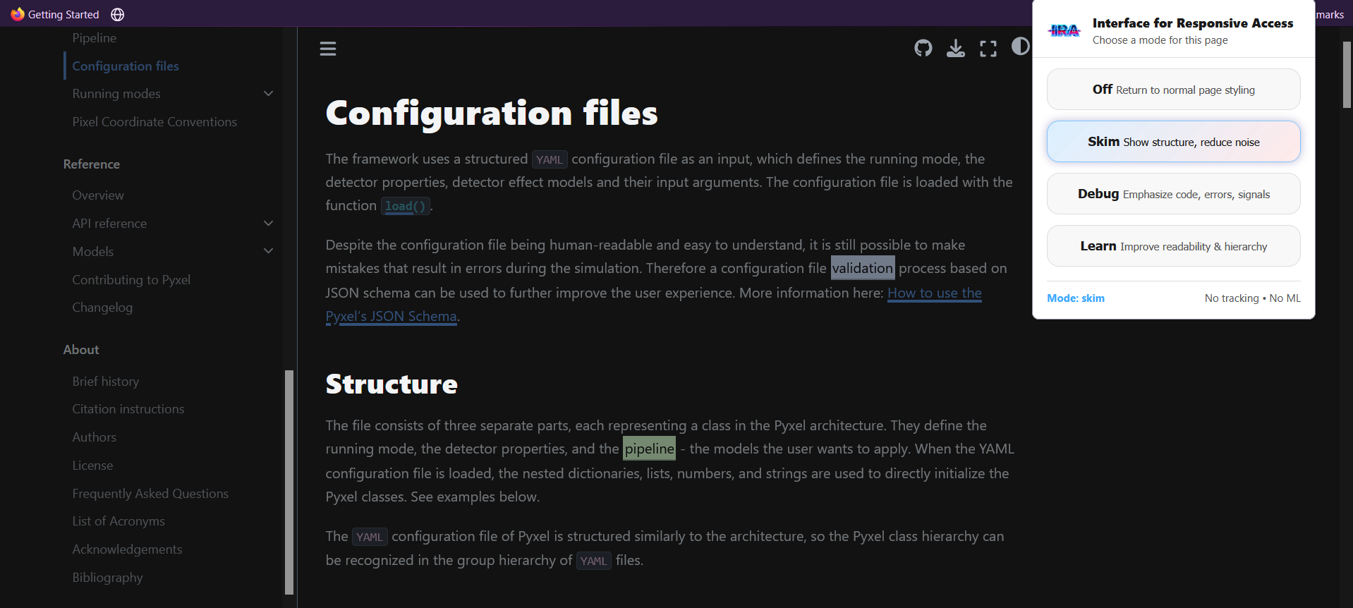 IRA is a Firefox browser add-on that lets you choose how a web page adapts to your current goal — without tracking, machine learning, or hidden automation.